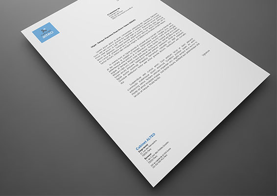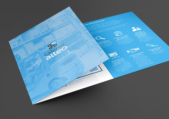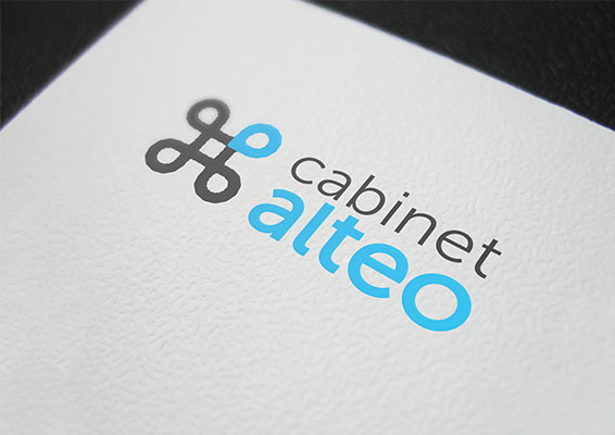 Création de l'identité graphique du Cabinet Alteo, comprenant : Logo Carte de visite Papier entête Newsletter Plaquette commerciale Masque Powerpoint Gabarit propal
